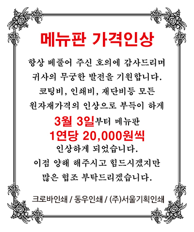 2019-11-04:기업:바디:271590원 2020-06-22북부:352000원 2020-06-24:농협:짜장타운:315000원 2020-10-26:기업:정영란:19270원 2020-11-19:기업:신화엠티:22000원 2020-11-20:0원 2020-11-24:기업:디에스유:20000원 2020-12-23:기업:신내:205000원 2021-01-04:0원 2021-02-04:기업:황현우:75400원 2021-03-23:기업:우리DM:3173400원 2021-04-05:기업:경성:157000원 2021-04-08:농협:박남진:198000원 2021-04-30:기업:자미원:396000원 2021-05-04:기업:양순옥:88000원 2021-05-20:기업:하나로:96580원 2021-06-01:기업:화정관:374000원 2021-06-15명은:748000원 2021-08-06명은:748000원 2021-11-22:기업:명장:396000원 2021-11-23:기업:홍보석:297000원 2021-11-24:기업:착한중국집:52000원 2021-12-08암사족발:225500원 2021-12-15:기업:박흥열:303600원 2021-12-21:기업:북부:280500원 2022-01-03:기업:해피:51000원 2022-01-07:기업:효정루:832000원 2022-01-21:기업:진준수:22800원 2022-02-16:기업:서울수도사업:154000원 2022-03-23:농협:명장:137500원 2022-05-18:농협:유방:96000원 2022-06-21:농협:짜마:429000원 2022-07-05:기업:명장:792000원 2022-08-24:기업:화랑불:154000원 2022-08-24도성:435600원 2022-09-13팔당족발:55000원 2022-09-26:기업:최옥동:1628000원 2022-10-14오윤영:693000원 2022-10-18:기업:북부:418000원 2022-11-01:기업:허형령:138100원 2022-11-16:기업:취홍:330000원 2022-11-22:기업:화랑불닭발:154000원 2022-11-28왕미리:155000원 2022-12-01:기업:김정태:66000원 2022-12-27:농협:미래향:1628000원 2023-01-06:농협:짜마:280500원 2023-01-06:기업:오윤영:241000원 2023-01-17:기업:주다:16000원 2023-01-27정경란:242000원 2023-02-02:농협:미래향:704000원 2023-02-07:기업:화를품은:85000원 2023-02-16청호:278500원 2023-02-21홍보석:341000원 2023-02-28:기업:북부:418000원 2023-03-27짜마:561000원 2023-03-29:기업:오픈집:203500원 2023-04-03:농협:최옥동:2552000원 2023-04-11이강복:385000원 2023-04-13:기업:김철:275000원 2023-04-24:기업:북부전단:418000원 2023-05-10:기업:허혛령:280500원 2023-05-17:농협:허승연:462000원 2023-05-18홍보석:183000원 2023-06-01나광민:176000원 2023-06-07강한경:165000원 2023-06-12:농협:청호:278500원 2023-06-28:기업:화품닭:85000원 2023-07-05효정루:722000원 2023-07-19:기업:북부:418000원 2023-07-27:농협:지재복:462000원 2023-08-14:농협:짜마:484000원 2023-08-29:기업:북경반점 :280500원 2023-09-01효정루:673000원 2023-09-26:농협:황궁쟁반:176000원 2023-09-27:기업:북부전단:418000원 2023-10-10:기업:화랑불닭발:154000원 2023-10-16:기업:북부전단:154000원 2023-10-26:농협:박남진:315000원 2023-10-30:기업:짬뽕의달인:225500원 2023-10-31나광민:110000원 2023-11-02:기업:신북경반점:183000원 2023-11-09:기업:북부:418000원 2023-11-14:농협:신화정:462000원 2023-11-22이종분:673000원 2023-11-24:농협:지재복:407000원 2023-12-07이가네:47300원 2023-12-19허영호:60000원 2024-01-11도원:462000원 2024-01-18:기업:자금성:242000원 2024-01-22홍보석:341000원 2024-04-05:기업:한정남 :55000원 2024-04-08:농협:미친짬뽕:446600원 2024-04-26:농협:이순남:203500원 2024-05-29이종분:673000원 2024-08-26:기업:북경반점:372000원 2024-08-29김철:143000원 2024-11-19:기업:이종분:678000원 2024-11-22:기업:까사코지:385000원 2024-11-25:기업:이경태:374000원 2025-02-11자금성:242000원 2025-02-11허영호:44000원 2025-03-10:농협:착한중국집:401500원 2025-07-25:기업:대청마루:748000원 2025-08-27효정루:1008000원 2025-09-18북부:440000원 2025-09-24:농협:신보람:462000원 2025-11-06효정루:1029000원 2025-12-04:기업:짜마:291500원 2026-03-23:기업:정근기:462000원 2026-04-09:기업:북부전단:462000원